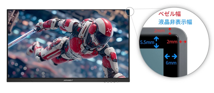 ベゼル幅:上左右2mm 液晶非表示幅:上5.5mm左右6mm