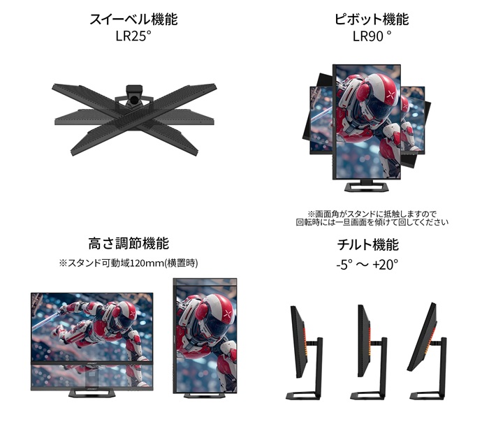 | 付属品 | マニュアル、 保証書、VESAマウント延長スペーサー、電源ケーブル、 電源アダプター、 DPケーブル、 HDMIケーブル、キャリブレーションレポート |