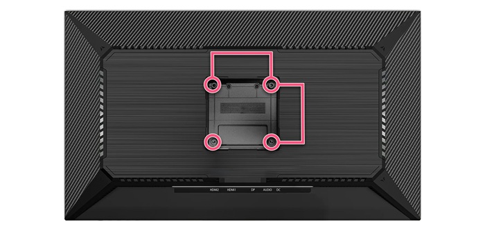 付属スタンドを取り外す事によりアームや壁掛け金物を取り付けることができます。