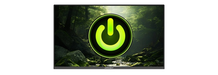 消費電力は標準で43W。省エネモードで28Wまで電力消費を抑えます。