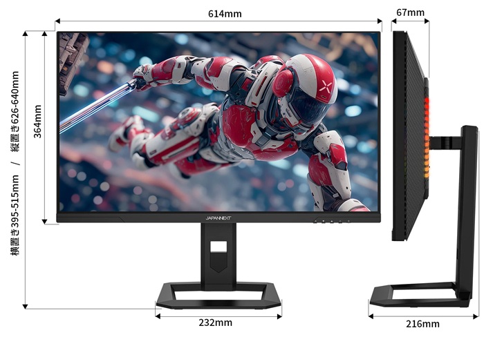| 外形寸法(スタンド付) | 【高】横置き395-515mm/縦置き626-640mm、【幅】横置き614mm/縦置き364mm、【奥行】216mm、スタンド幅 232mm |