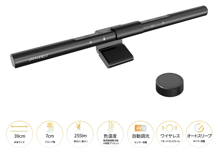演色評価数(CRI):97以上を実現。画面への映り込みを防ぎます。自動調光機能を搭載。内蔵センサーが周囲の照度を感知し、ライトの明るさを自動で調整。