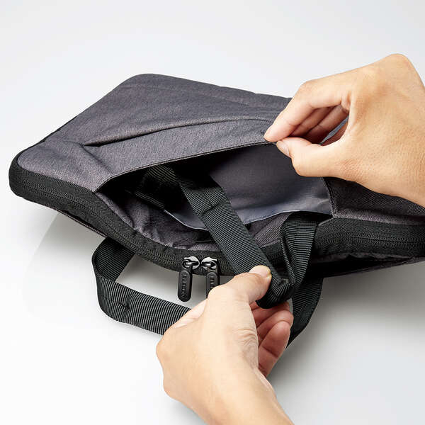 バッグスタイルでもケーススタイルでも使える、収納式ハンドルを採用したインナーバッグです。