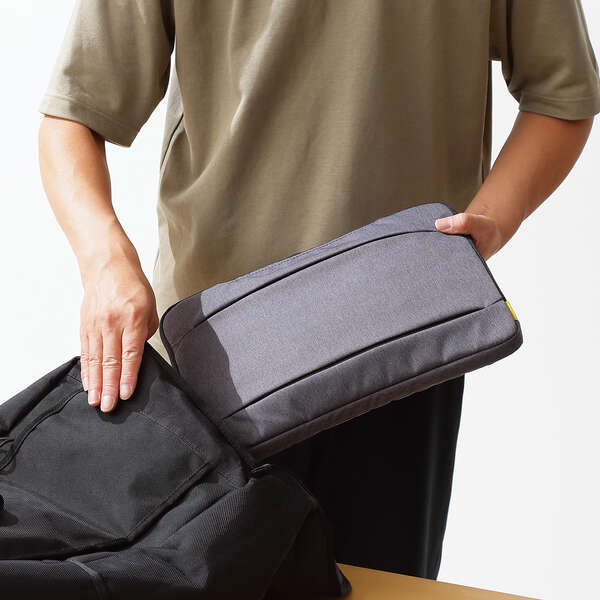 バッグスタイルでもケーススタイルでも使える、収納式ハンドルを採用したインナーバッグ