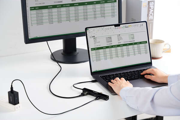 USB Type-C™ポート搭載パソコンに最大6ポートを増設可能。さまざまなデバイスを1本のケーブルで一括接続できます。