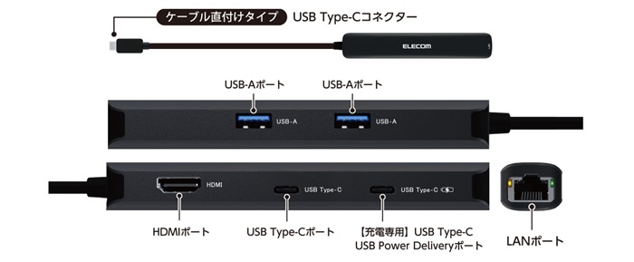 | コネクタ仕様(アップストリーム) | USB Type-Cコネクター<USB 5Gbps(USB3.2(Gen1))> |