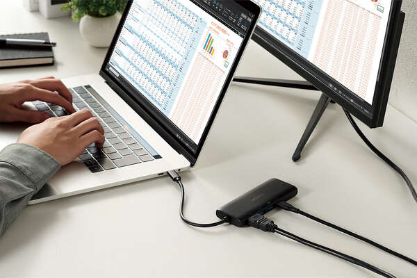 USB Type-Cコネクター搭載パソコンにケーブル1本で必要な周辺機器を一括接続できます。