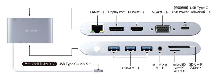 | 映像出力ポート(ダウンストリーム) | HDMI×1、DisplayPort×1、VGA×1 ※詳細はエレコムHPをご確認ください。 |