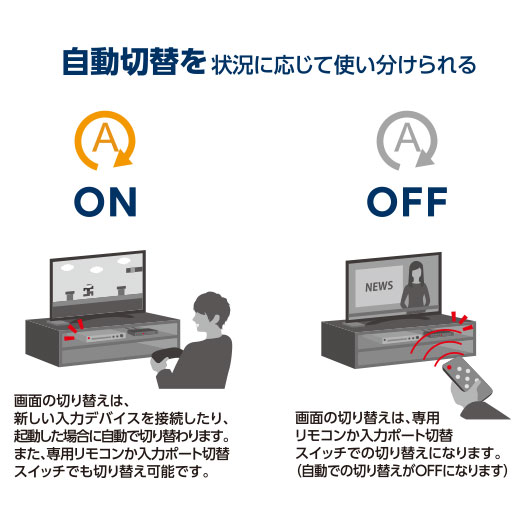 付属の専用リモコンにより、離れた場所からのポート切り替えが可能です。