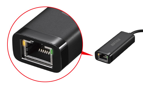 ※ 画像は説明のためLANケーブルの表示を省略しています。実際の商品ではLANケーブルを接続していないときはLEDランプが消灯します。