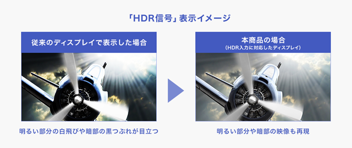 本商品はDisplayHDR 400を取得しているので、通常のHDR対応ディスプレイと比べ、HDR対応のゲームや映像をよりダイナミックで高画質に表示することができます。HDR対応ゲームの白飛びや黒つぶれのない広い空間の色表現を楽しめます。