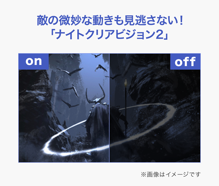 暗いシーンに隠れた敵もより鮮明に映し出すことができる「ナイトクリアビジョン2」を搭載。