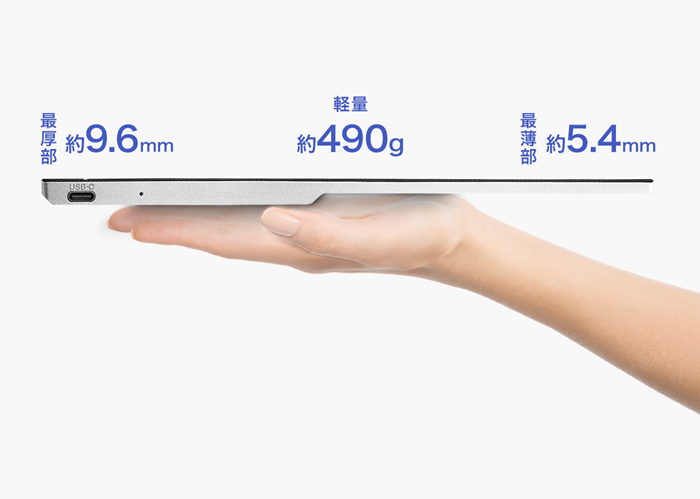 A4ノートPCと近いサイズ感で、外出先でも気軽にデュアルディスプレイ環境をつくれる