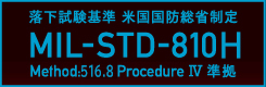 本商品は、このMIL-STD-810H Method:516.8 ProcedureⅣに規定されている落下試験を実施し問題ないことを確認いたしました。(メーカー調べ)
