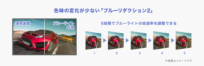 黄色味を抑えながらブルーライトを低減させる「ブルーリダクション2」