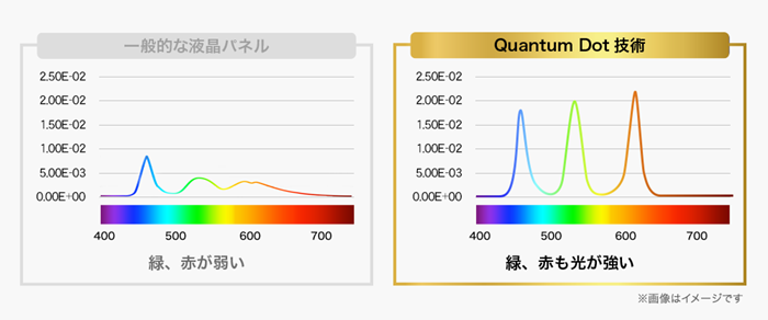 Quantum Dot技術と広色域パネルを組み合わせ、広色域を実現