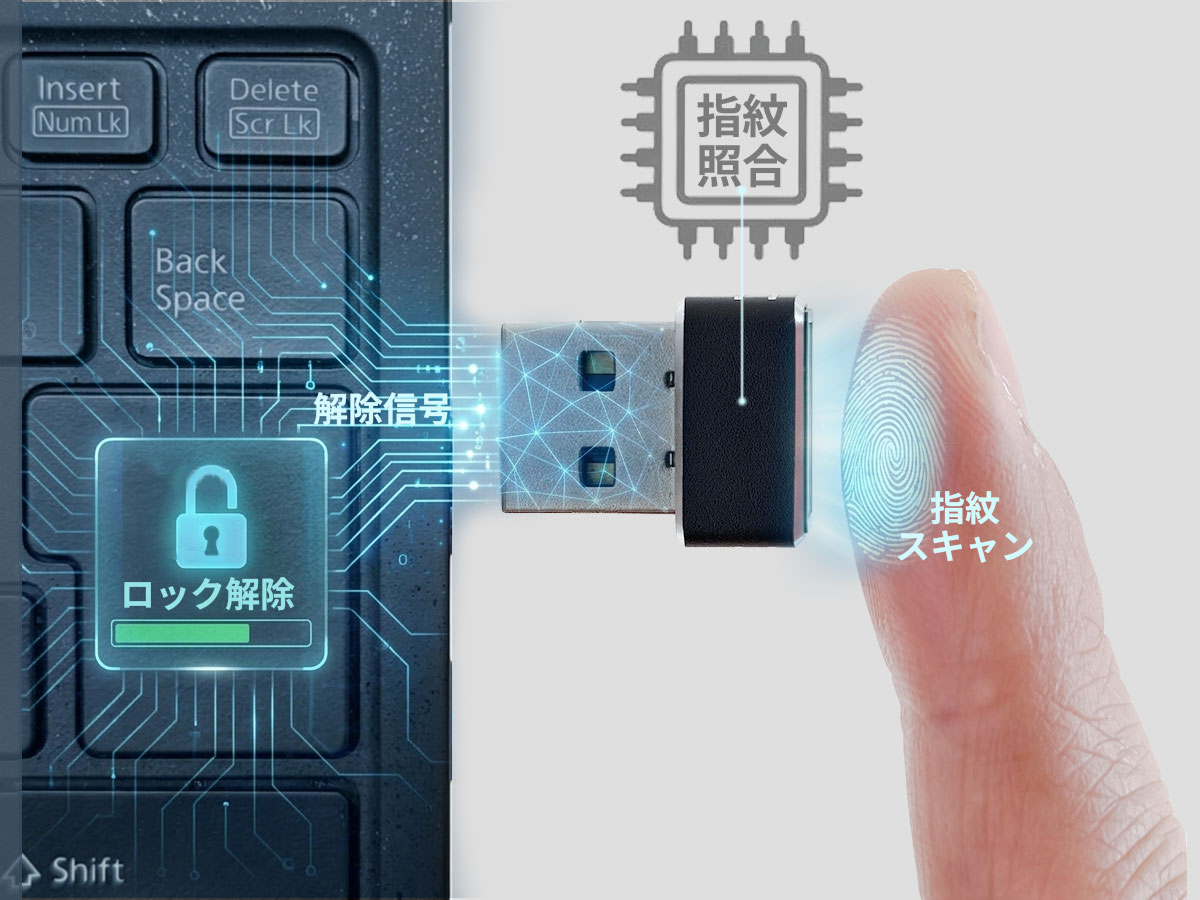 | ※ 指紋データはアダプター本体チップ内に暗号化して保存されます。PCへは保存されません。 | |