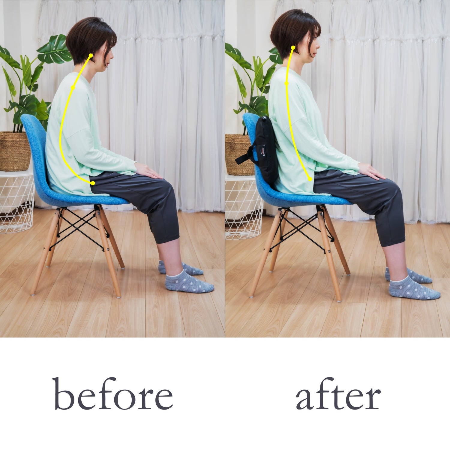■ 骨盤を起こしやすく、姿勢保持をサポート ・腰椎前弯(生理的なS字)をサポートし骨盤の後傾を抑えやすくなります。・骨盤が安定しやすくなることで、上半身や頭部の美姿勢の保持が期待できます。