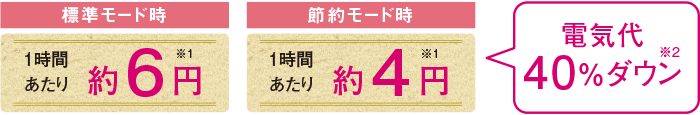 - ※2 メーカー調べ/部屋の広さ8畳相当で6時間運転した場合。除湿能力も40%低下します。