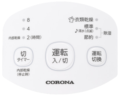 | 運転モード | 除湿(標準・節約)・衣類乾燥・送風 |