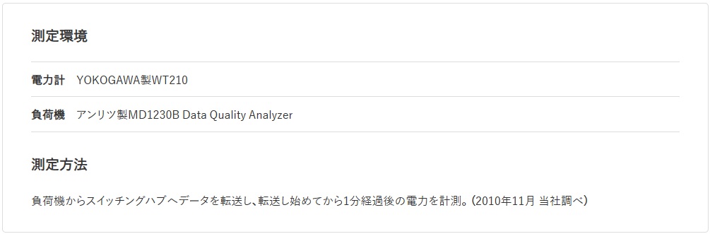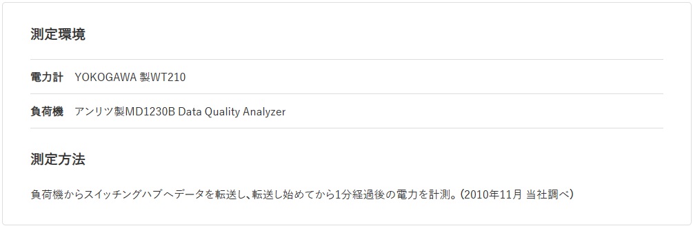 全ポート接続時と全ポート未使用時の電力比較(実測値)