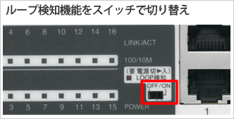 ループ検知機能のON/OFFは、前面パネルのLOOP検知スイッチで簡単に切り替えいただけます。