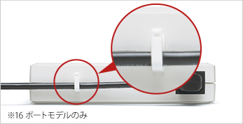 筐体に付属のフックがケーブル抜けを防止します。